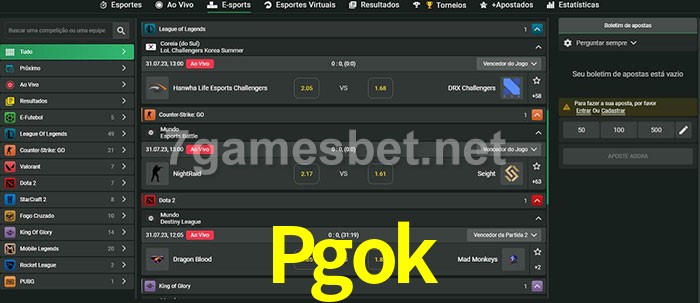 O Pgok oferece uma grande seleção de opções de apostas em e-sports com probabilidades competitivas